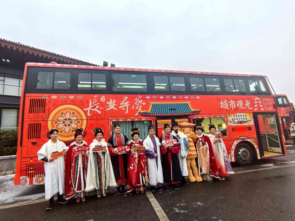 中國年最西安,潮西安新玩法,“乘巴士、觀秦風(fēng)、習(xí)漢學(xué)、品唐韻”慢享西安古城魅力,快來乘坐“西安城市觀光車”感受一場穿越之旅吧。