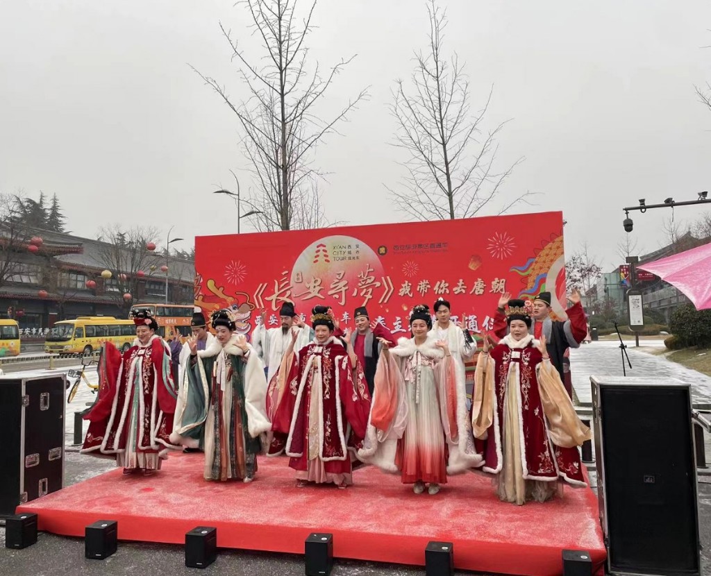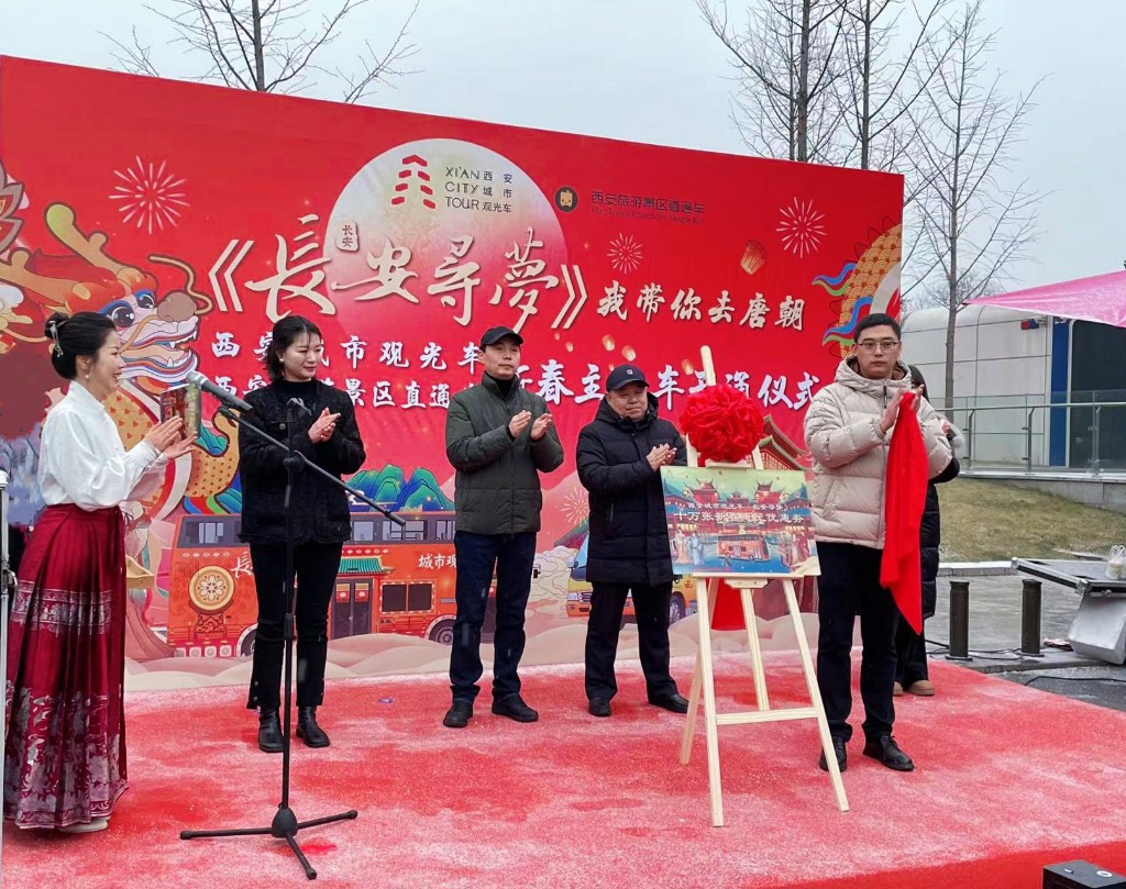 2月2日是中國傳統(tǒng)的小年,由西安城市觀光車主辦的長安尋夢 我?guī)闳ヌ瞥咝麓褐黝}車開通儀式,在西安市民游客服務(wù)中心大雁塔景區(qū)拉開帷幕。