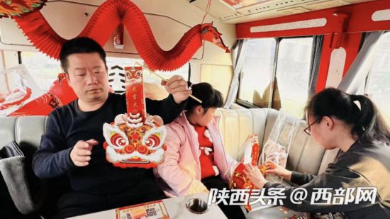 弦管千家沸此宵,花燈十里正迢迢?;?,是元宵節(jié)的重要元素,也是喜慶吉祥的象征。在西安城市觀光車上,市民將材料拼疊,組裝,最后點綴上流蘇與中國結(jié),元宵花燈就完成了。