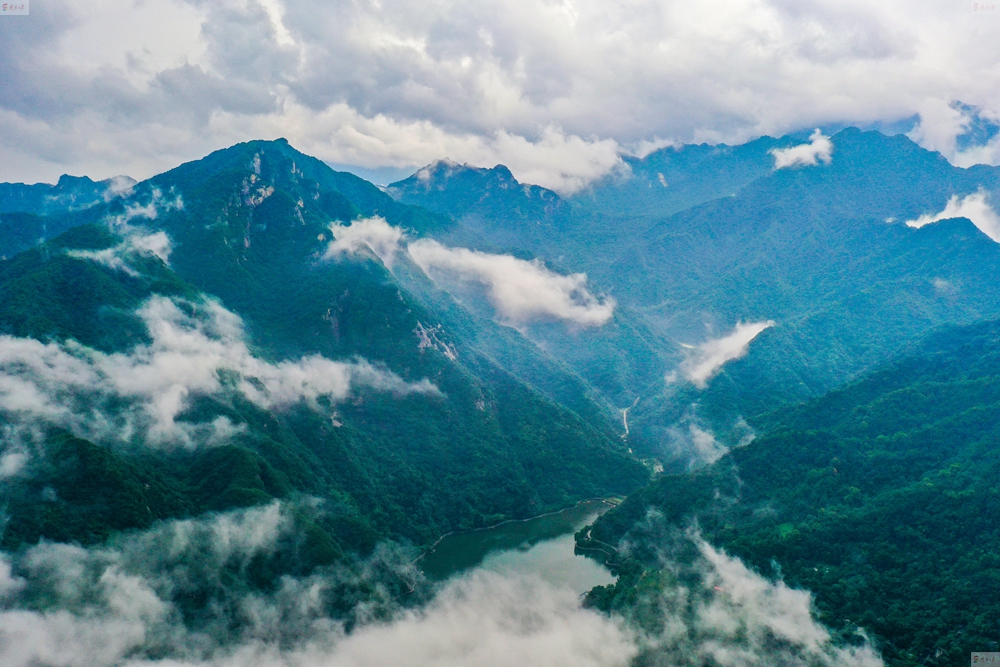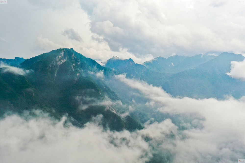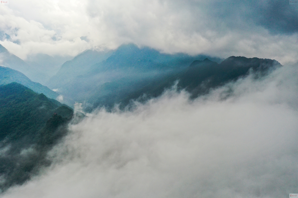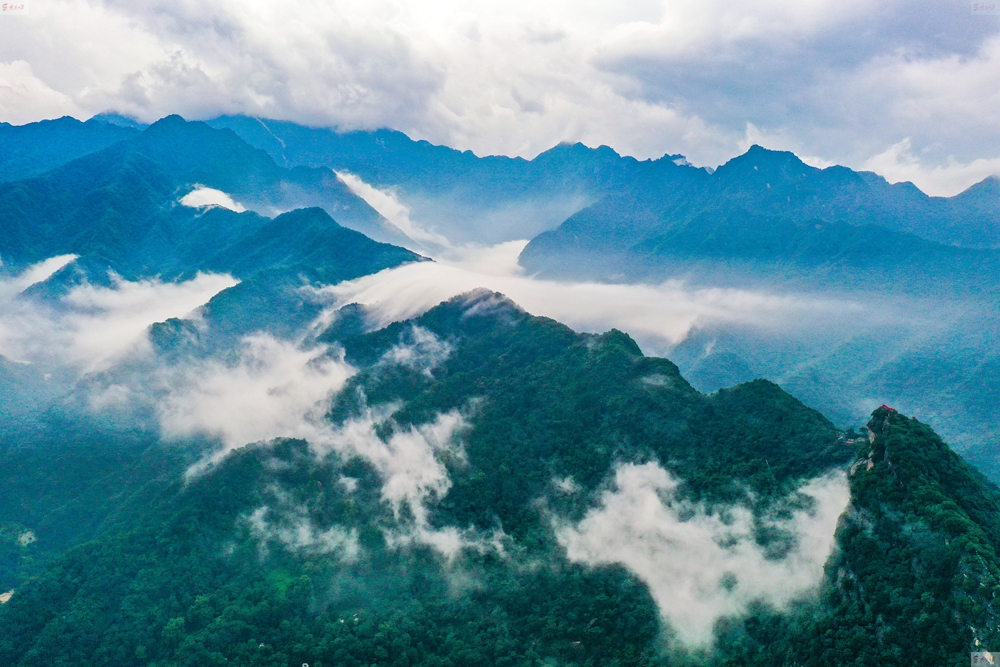 數(shù)十分鐘后,雨帶北移,秦嶺終南山世界地質(zhì)公園翠華山景區(qū)驚現(xiàn)云海。