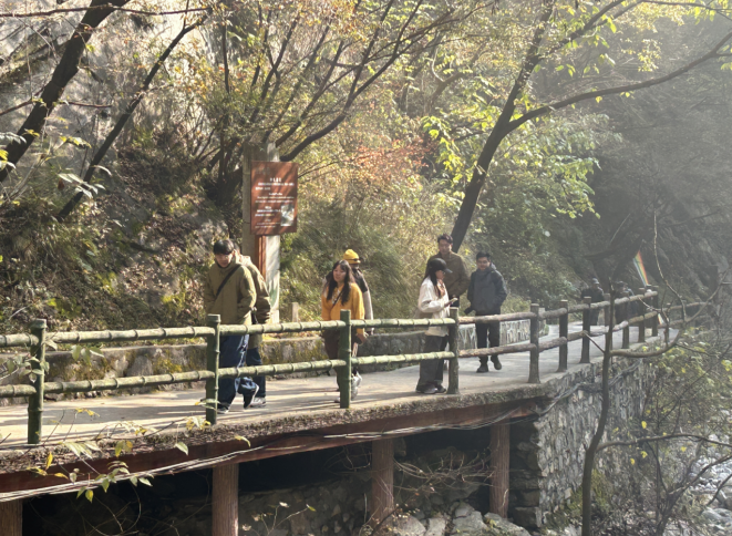 漫步初冬的太平國(guó)家森林公園,如入畫(huà)境,“楓”景迷人,黃櫨醉客。無(wú)論是登高賞瀑的沉浸游,還是隨行觀景的休閑游,秦嶺秋冬的詩(shī)意之美無(wú)處不在。