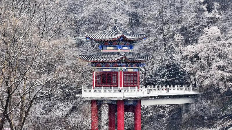 12月12日,翠華山迎來今冬第二場降雪,連綿起伏的山巒被皚皚白雪盡數(shù)包裹,原本雄奇的峰巒平添幾分婉約之態(tài),漫天飛絮般的雪花簌簌飄落,與嶙峋石海、巍峨翠華峰、澄澈天池相映成趣,將山間景致暈染成一幅幅渾然天成的冰雪山水畫卷。